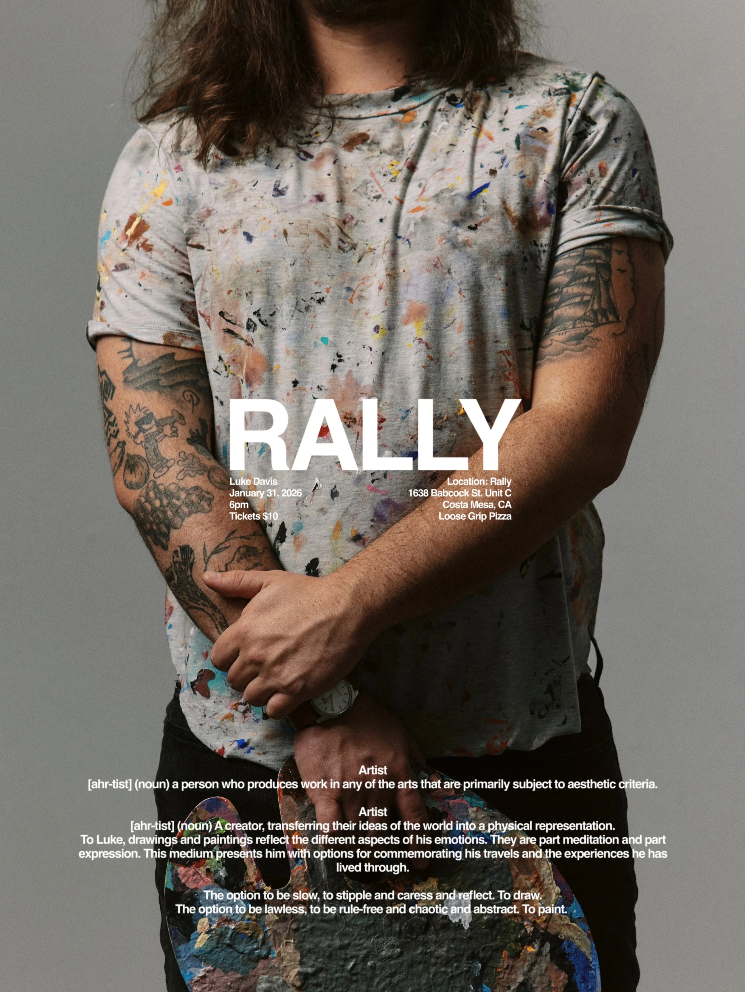 Join us on Saturday, January 31, as we bring in a creative weapon: Luke Davis. A man who seeks the creative ingenuity in all facets of life, Luke enthralls his viewers with paintings, drawings, poetry, and even food in his pursuit of self-expression. For the first time, Luke will be displaying all aspects of his creative process in his methodical, all-encompassing vision. We can’t wait to see you there!